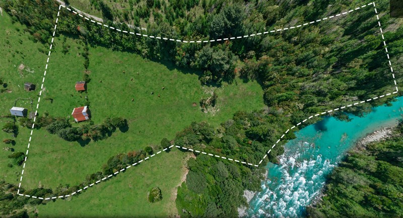Excelente terreno plano de 3,2 Ha con 143 metros de orilla de Rio Blanco, conocido por su excelente pesca y rafting.