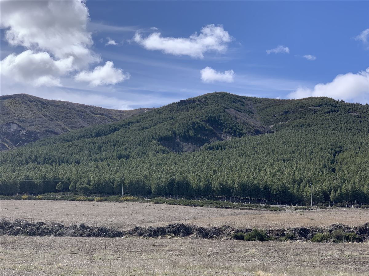 193 ha se ubican de carretera a cordillera, limitando con un río a los pies del cerro, de las cuales 140 ha aprox están forestadas con Pino Ponderosa y Contorta de 15 años, en edad de Raleo y 20 ha aprox con bosque nativo.