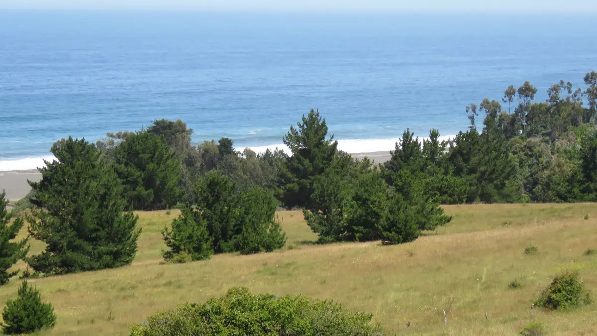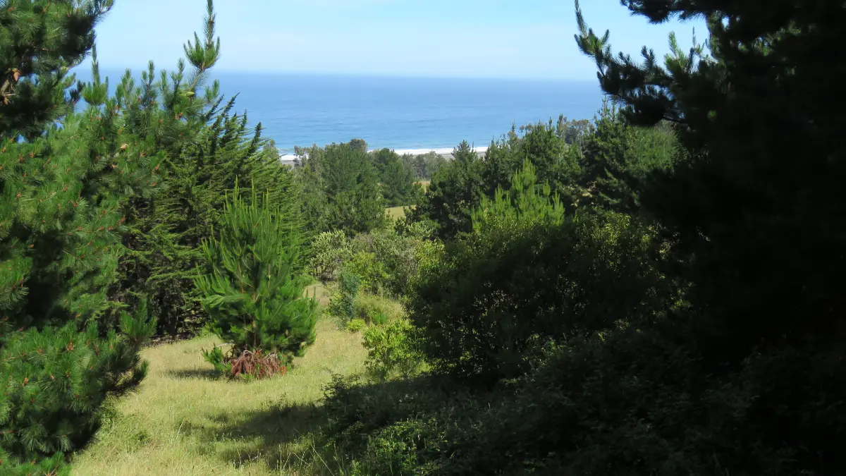 Vista panorámica y limpia a toda la playa del sector, terreno con praderas de moderada pendiente, sectores con nativos y Cipreses. Terreno 100% aprovechable.