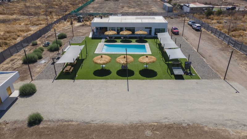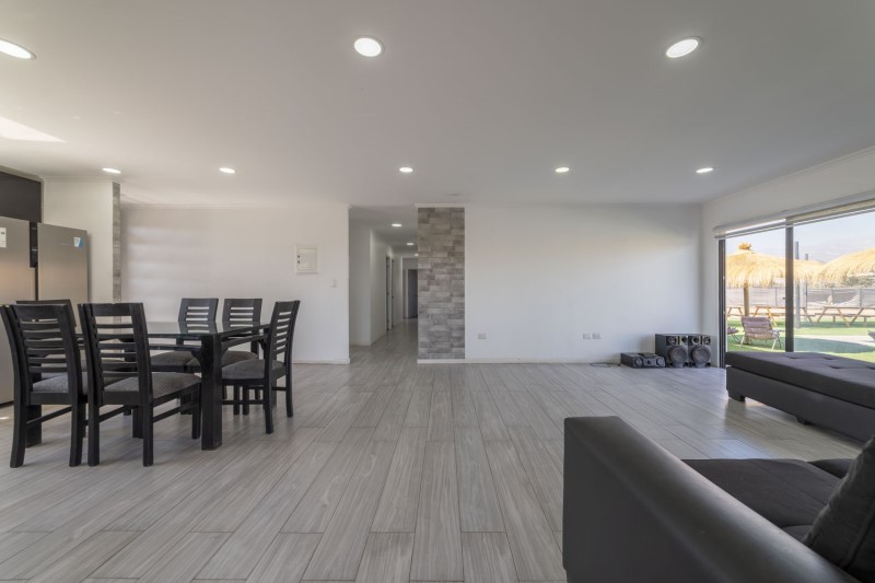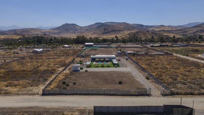 Parcela ubicada en el Loteo "Los Perales de Chacabuco", comuna Colina, sector Chacabuco. Se sitúa en el sector rural, dentro de la Región Metropolitana muy cercana a su límite norte.\nActualmente la propiedad funciona como centro de eventos, sin embargo por su morfologia podria tener uso habitacional, cuenta con 5.000m2 de terreno segun escritura.\nEn cuanto a sus deslindes, es de forma regular de 50 x 100 metros, con acceso desde camino privado del loteo.\nLa construcción corresponde a una vivienda aislada de 1 piso, con 153m2 construidos mas 30m2 de terraza con quincho. En cuanto a sus obras complementarias cuenta con dos piscina, 2 baños exteriores, pasto sintetico, cierros consolidados.\nEl acceso es desde la Ruta 68.\n\nConsiderar 2% \n\nPropiedad en proceso de regularización.