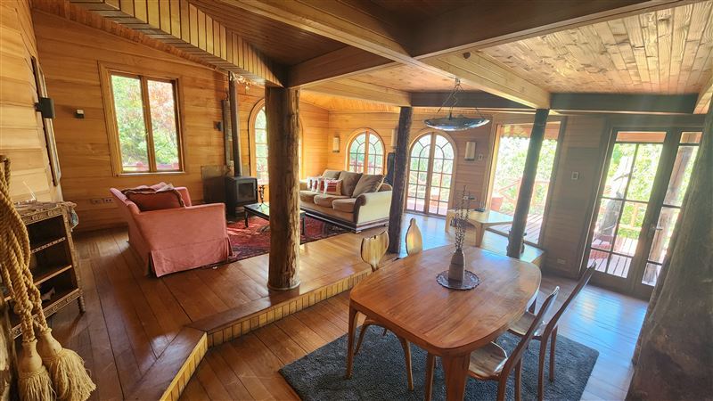 1) Los Robles: construida por expertos artesanos de Chiloé, en base a maderas nobles y nativas. En esta casa encontrarán vitrales, antiguas y grandes puertas, delicadas piezas recicladas traídas de distintas regiones de Chile. Capacidad para 8 personas.