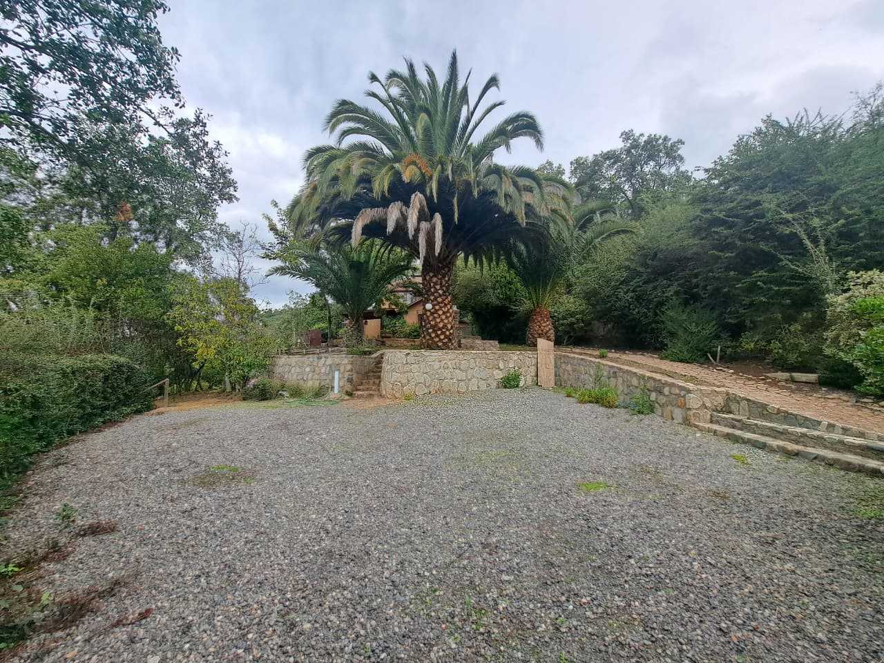 La parcela se ubica en el sector alto del condominio, con una vista inigualable al valle y a la Laguna de Aculeo. El terreno, irregular y lleno de rincones con senderos y vegetación nativa, ofrece un entorno perfecto para el descanso y la vida al aire libre. Dispone de árboles frutales, sistema de riego tecnificado, muros y escaleras en piedra, pérgola, fuente de agua, piscina de 80 m³ y portón eléctrico con control remoto.