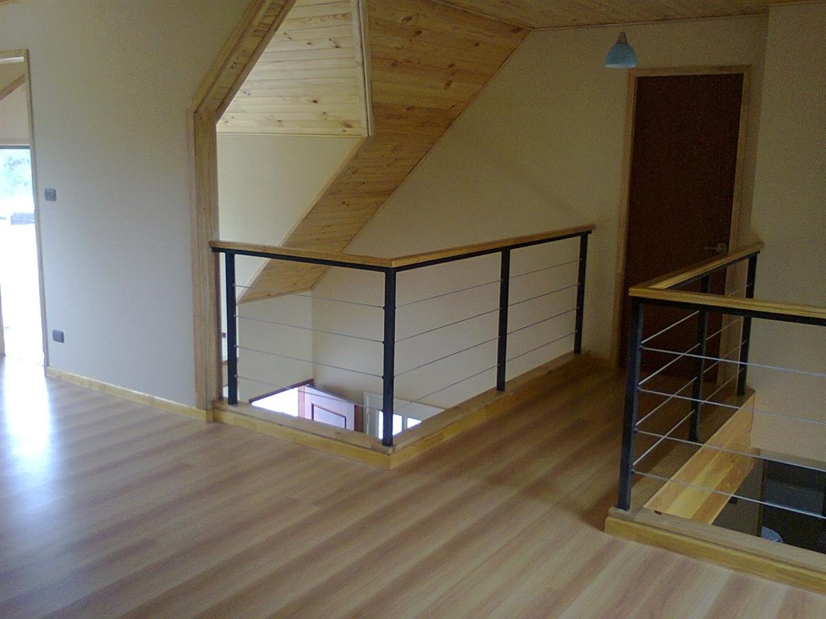 Diseño elegante en doble altura y un puente que une los dos dormitorios del segundo piso, antisismico, su materialidad permite mejorar la calefacción y ventilación.
