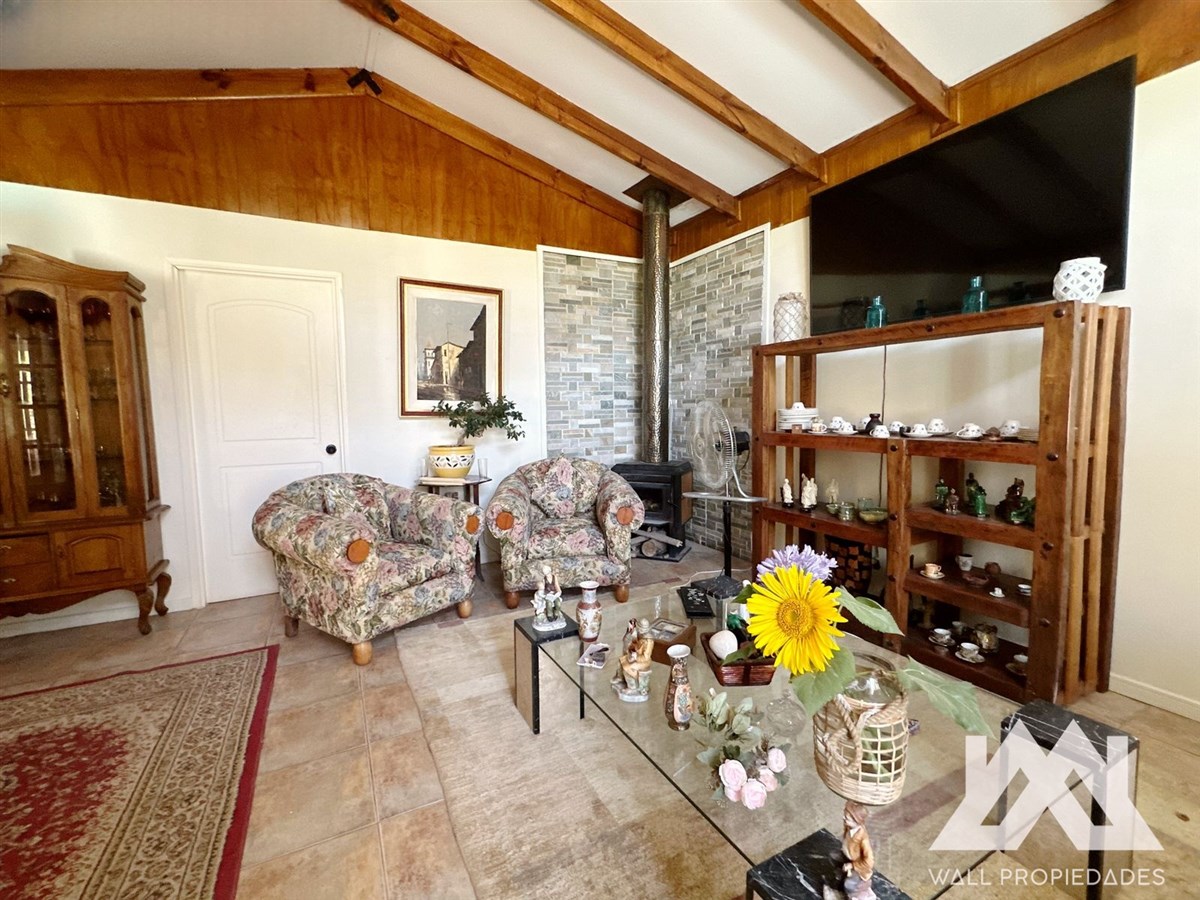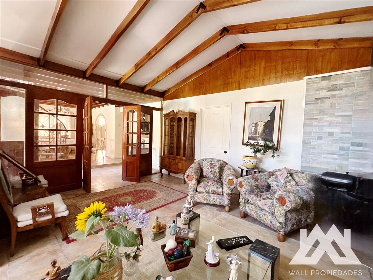 Sala de eventos familiares, Quincho, Horno de barro, áreas verdes, Jardines formados, Arboles Frutales, Cascada, estacionamientos.