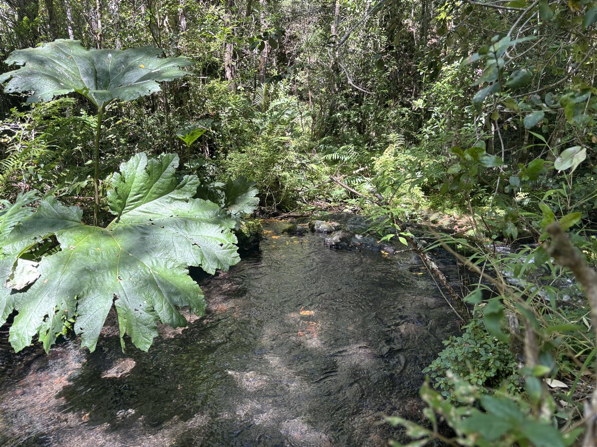 Título: Santuario Natural en Los Riscos: Bosque Centenario, Río y Vista al Volcán