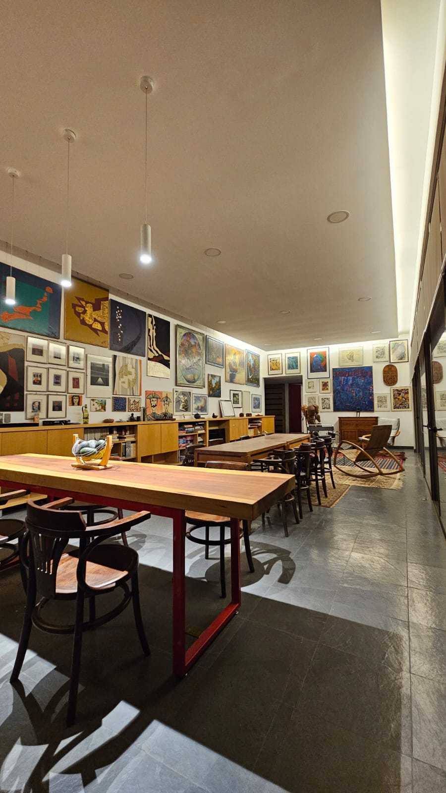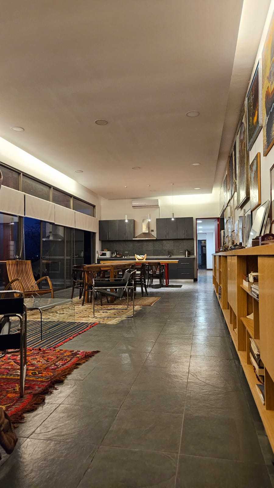 Constituido de una gran sala (65m2) con techo alto (3,40m), que conforma tres áreas: estar, comedor, cocina.