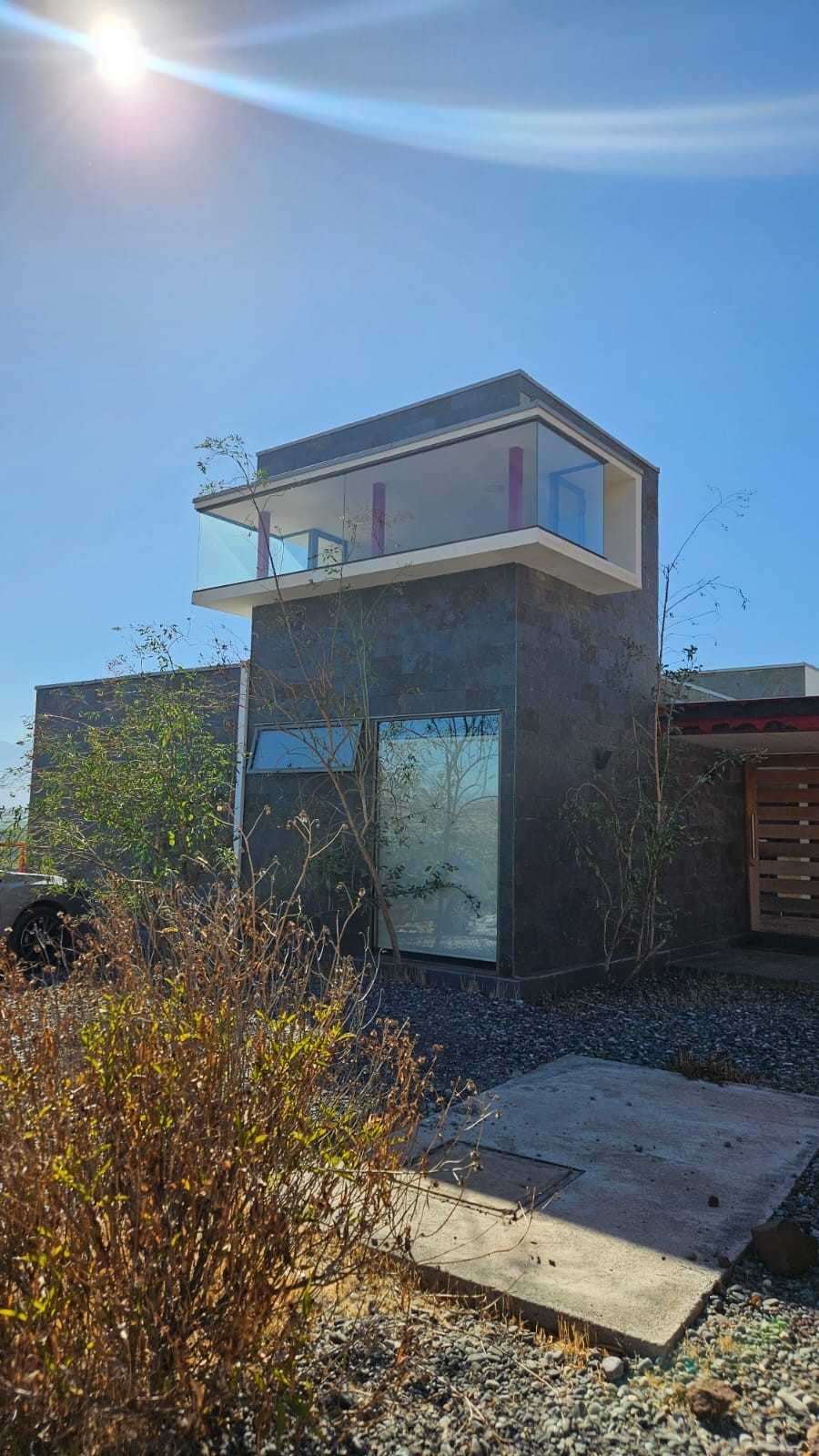 La casa consta de tres cuerpos - dormitorio principal, espacio común, cuartos de visitas- separados al frente por dos amplias jardineras.