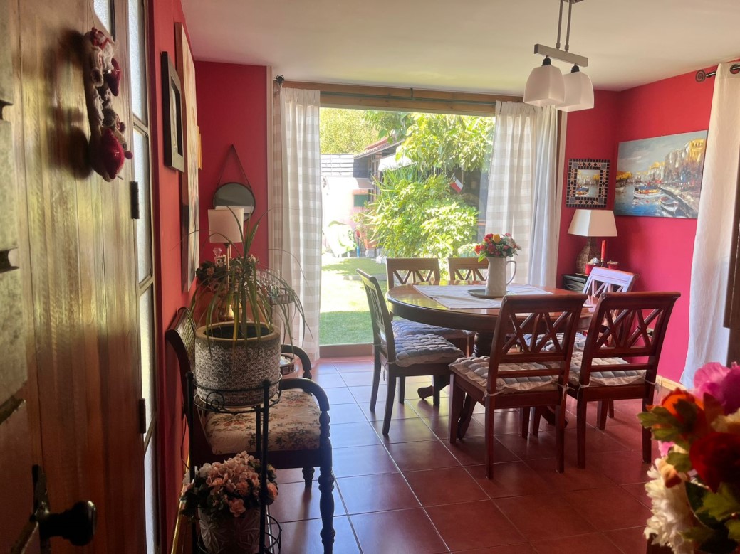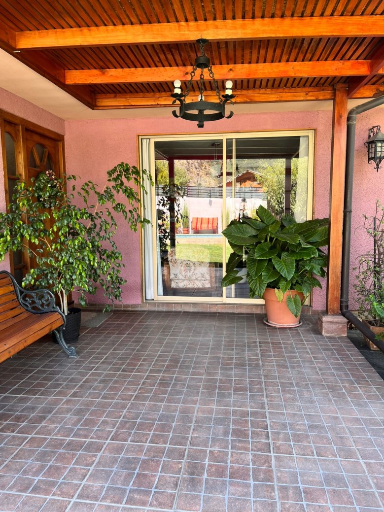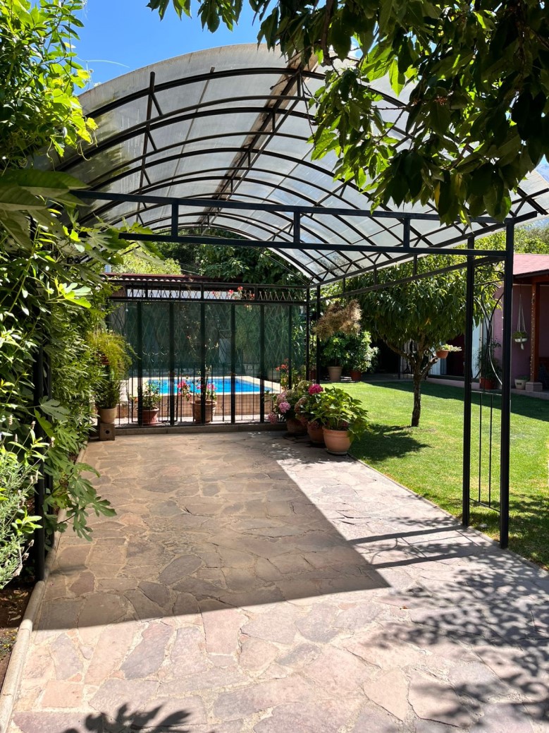 Vendo exclusiva parcela con casa en el Cajón de Maipo, sector el Canelo que cuenta con:\n\n* 463 mts2 de parcela y 121 mts2 construidos\n* 4 Dormitorios, 2 de ellos en suite (baño dentro del dormitorio)\n* 3 Baños completos en total (1 es baño de visita)\n* Living con bosca para el invierno\n* Comedor con vista a la piscina\n* Amplia Cocina con salida a patio techado\n* 3 Estacionamientos (1 de ellos es techado)\n* 1 Piscina rectangular\n* 1 Quincho equipado con horno de barro, asadera para asados y lavadero para platos\n* 1 Bodega\n* Piso flotante\n* Pandereta de división de cemento\n* No se trata de condominio, por lo que no hay gastos comunes\n* Luz a través de Enel\n* Árboles frutales como: Duraznos, limones, naranjo, cereza, palta y membrillo.\n\n*** Derechos de Agua de Pozo con Escritura***\n\n Cercano a Consultorio Las Vertientes, Las Vizcachas, Santa Isabel, Colegio el Almenar, Internacional Country, Chilean Eagle, restaurantes y minimarkets.\n\nDespierta cada día con aire puro, vista verde y tranquilidad. Una propiedad que combina espacio, comodidad y entorno natural, ideal para vivir o invertir.\n\nContáctanos ************\n