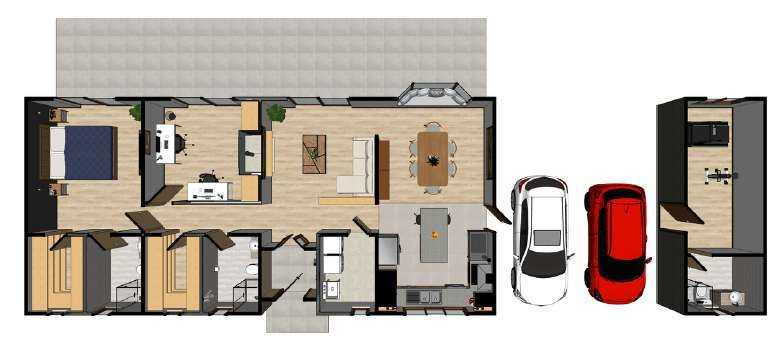 Casa MP, un concepto abierto que cuenta con 230 m2 de superficie total construida que incluye living - comedor, cocina amoblada, 3 dormitorios con closet, 3 baños, dormitorio principal en suite y walking closet; loggia; dos estacionamientos , terraza, caminos interiores, humedal de purificación tratamiento de aguas grises, bodega. S.1