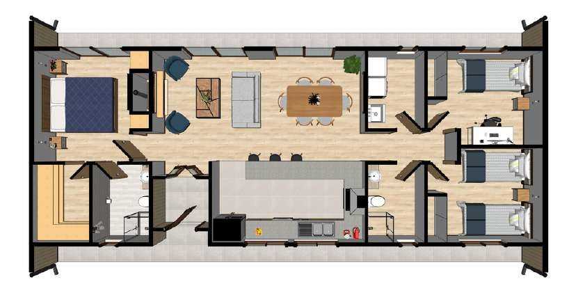 Fundaciones y radier de hormigón armado. Estructuras en madera impregnada en 4" de sección. Tabiques encamisados en doble placa de Osb. Excelente aislación termoacústica en lana de vidrio de 14 cm en cielos y muros.Excelentes terminaciones. Ventanas de Pvc Termopanel. Piso fotolaminado en living - comedor. Porcelanatos de grandes formatos en cocina,loggia, baños y terraza Conexiones TV, Internet y Aire Acondicionado.Chimenea. Pozo Profundo y Alcantarillado aprobado. Instalación eléctrica y de gas gas probados SEC.