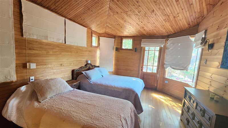 1) Los Robles: construida por expertos artesanos de Chiloé, en base a maderas nobles y nativas. En esta casa encontrarán vitrales, antiguas y grandes puertas, delicadas piezas recicladas traídas de distintas regiones de Chile. Capacidad para 8 personas.