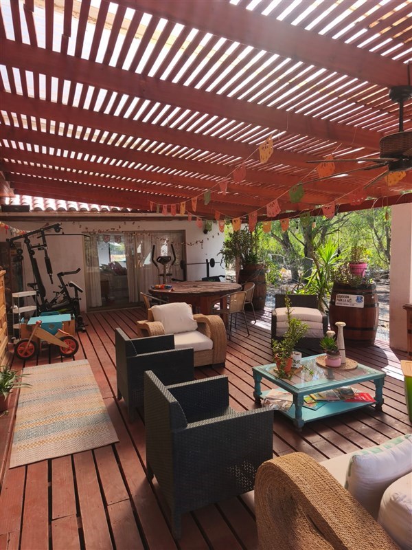 Amplia terraza techada con quincho incorporado