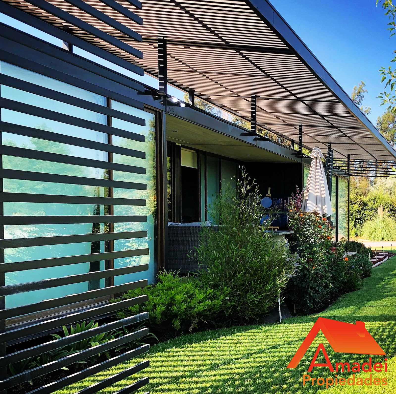 En el exterior, esta parcela en Chicureo ofrece espacios realmente disfrutables: piscina de aproximadamente 50 m², pérgola-quincho, fogón, amplias áreas verdes y jardines diseñados con paisajismo, incluyendo árboles decorativos, árboles frutales y huerta. Las fotos muestran un jardín formado, con gran amplitud, privacidad y una estética muy bien resuelta, ideal para disfrutar en familia o con amigos.