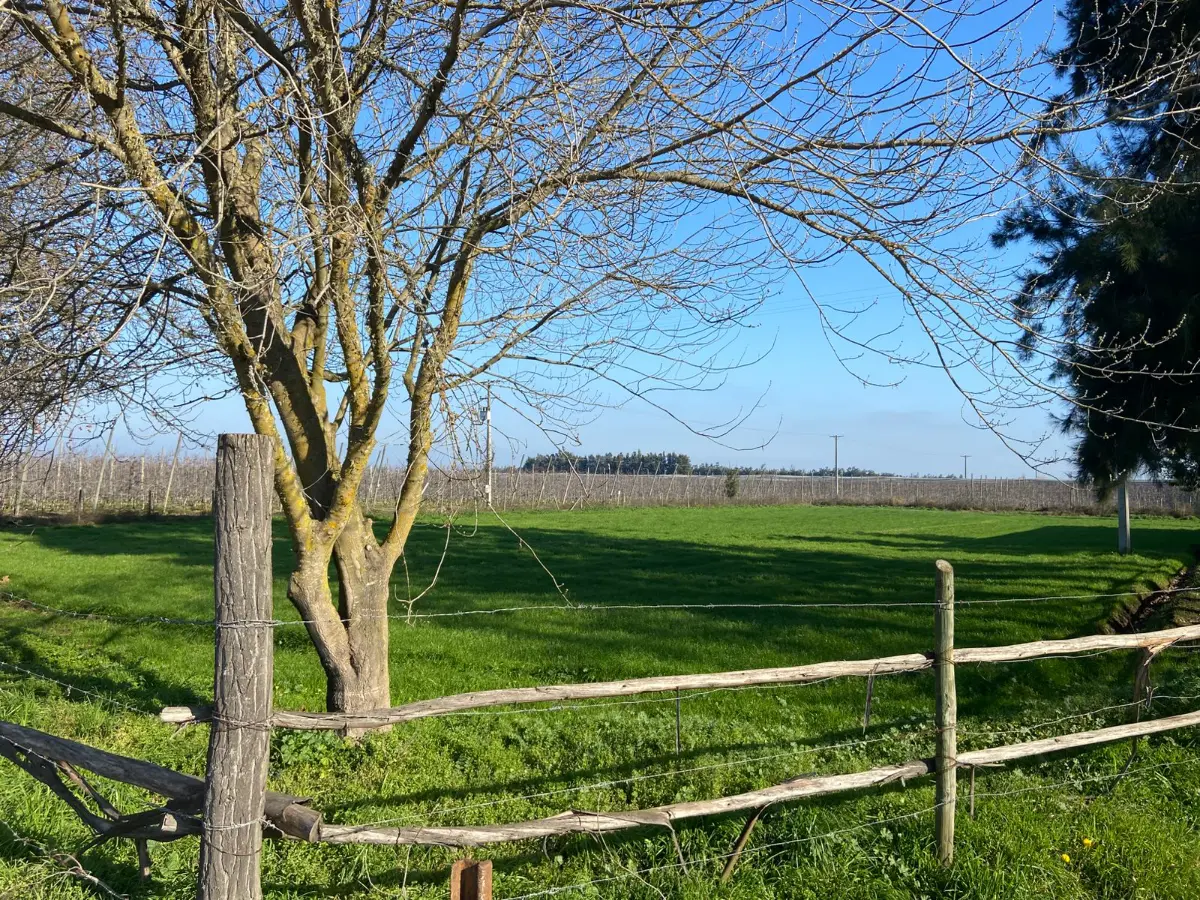 Parcela ubicada a 2 Kms de Ruta 5 Sur ,salir en Camino Porvenir ( Km 147) en dirección al poniente por camino pavimentado hasta el Fundo Santa Teresa. Tránsito permanente en buen estado con cruce ferroviario con barreras. Parcela de 4300 m2 con bodega de adobe de 500 m2 y casa cuidador 50 m2, con agua de riego y noria.
