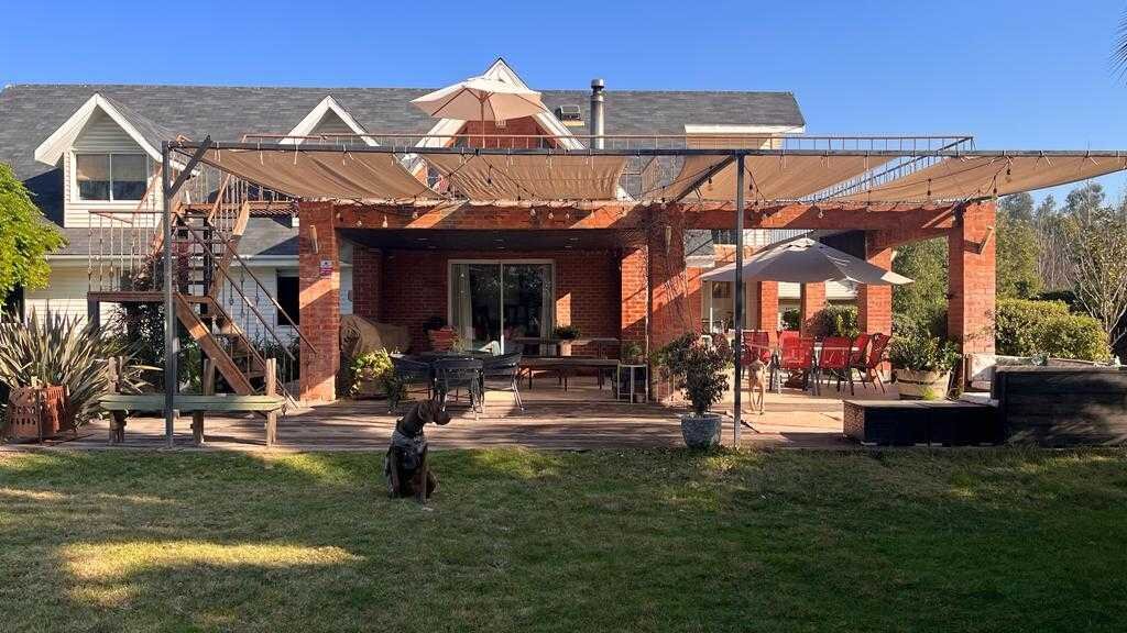 Venta Parcela Malloco - Peñaflor\n\nUna casa para vivir y ser vivida junto a la familia y amigos.\nSorprende a tus invitados con múltiples espacios que invitan a disfrutar y compartir.\nUbicada en Malloco, con directa y expedita salida hacia autopista del sol , 35 minutos hacia Santiago, 1 hora 30 minutos hacia la costa.\nLa casa tiene, 412 Mts 2 construídos y 5000 mts2 de terreno.\n\nLa propiedad cuenta en primer piso con 3 dormitorios, 3 baños, dormitorio principal en suite, con un atractivo y amplio walk in closet. Además, home office, pieza invitado, living comedor con acceso a las terrazas, amplia cocina amoblada y equipada con comedor de diario.\nEl segundo piso nos entrega una gran sala multiusos, una oficina y 1 baño.\n\nExtenso jardín con riego automático, amplias terrazas, pérgola, winter garden y piscina.\n\nLa casa se encuentra ubicada en consolidado condominio de 20 parcelas, conserje, cámaras de vigilancia y derechos de agua.\n\nCercano al condominio encontramos : colegios, supermercados, farmacias, centros de entretención , restaurantes, centros deportivos y servicios varios.\n\nTasación bancaria UF 14.000\nPrecio venta UF11990\n\nTienes que verla!!!\n\n\n \n\n- KP499720 - KPT040802 - \n - Publicado usando KiteProp CRM Inmobiliario