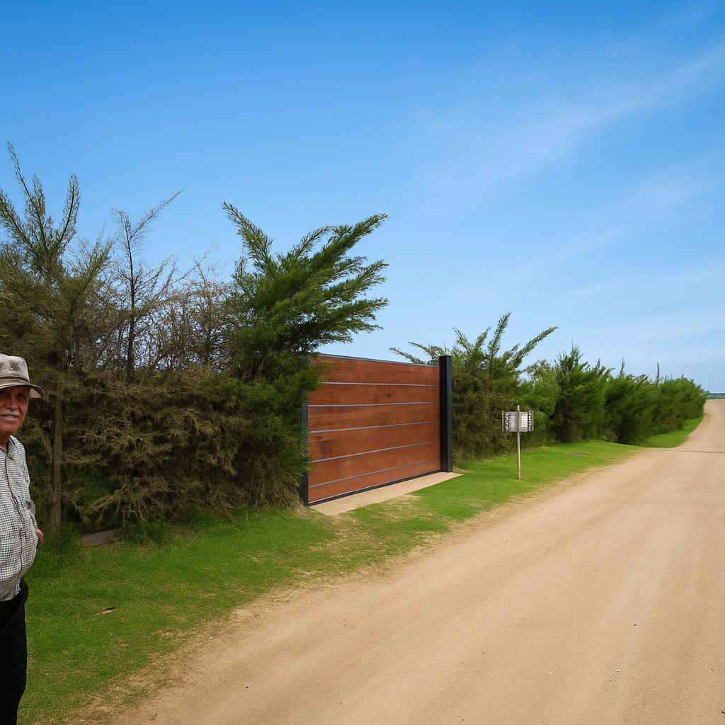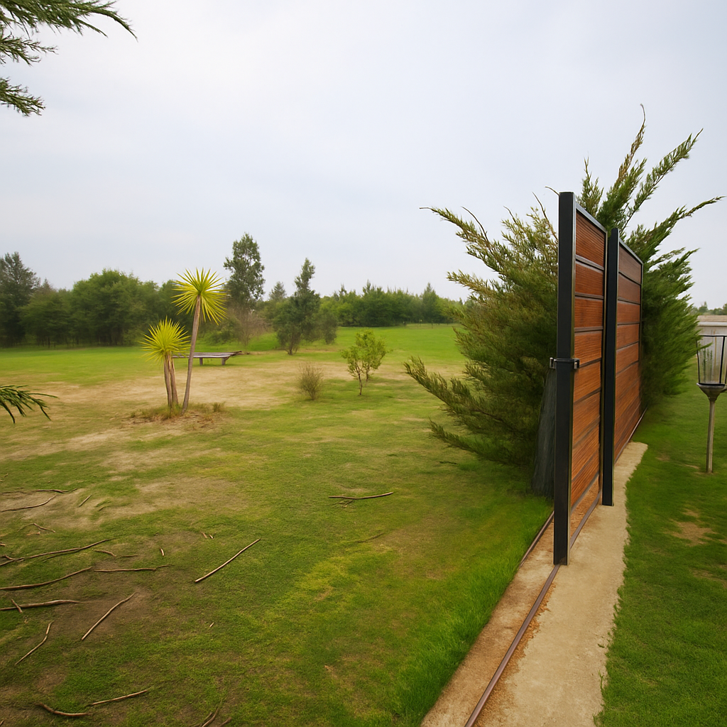 La propiedad hace esquina entre las calles Paltos y Olivos, totalmente cercada, con portón de acceso y todo el perímetro arborizado con pinos. Tiene gran cantidad de árboles frutales y nativos, con sistema de riego distribuyendo un aspersor en cada uno de los árboles, y seis tomas de agua, según se puede apreciar en las fotografías.