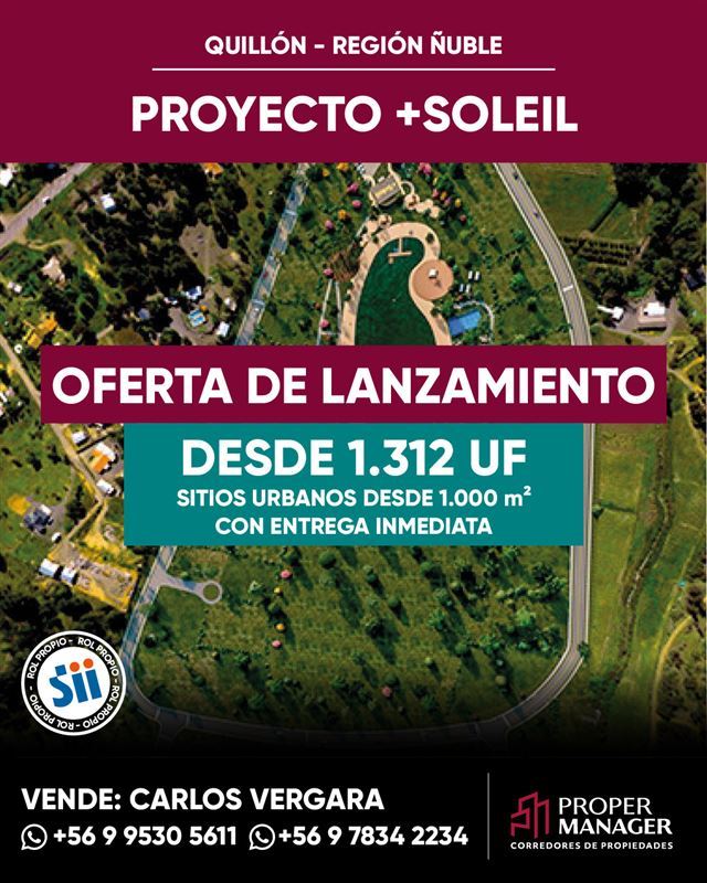 En el Valle del Sol de Quillón, terrenos urbanos y urbanizados en el exclusivo condominio privado +SOLEIL.