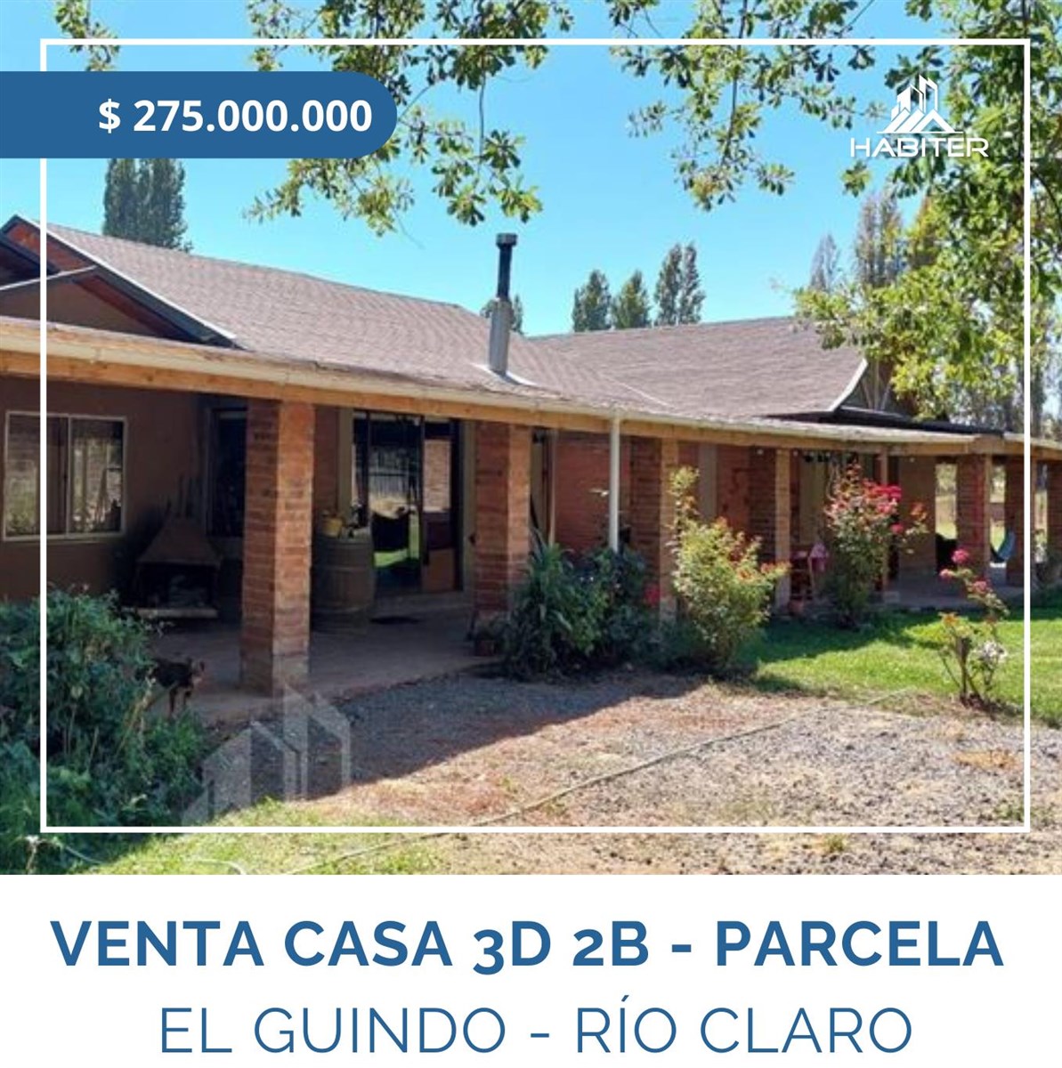 Se vende o arrienda amplia casa colonial de 3 habitaciones, ubicada en la comuna de Río Claro, sector “El Guindo”. La habitación principal es muy amplia y cuenta con baño privado equipado y walk-in closet. La casa también incluye una amplia cocina con muebles empotrados listos para usar, living comedor, corredor techado por tres lados alrededor de toda la casa, y un baño extra.