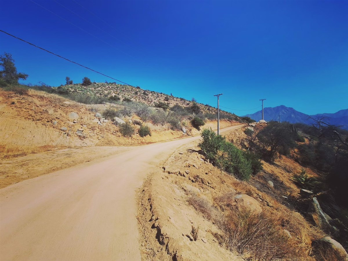 * Ingreso a la parcela por el Oriente. Adecuado para ubicar área social (piscina, terraza, quincho, etc.) con vista hacia la puesta de sol del valle Poniente.