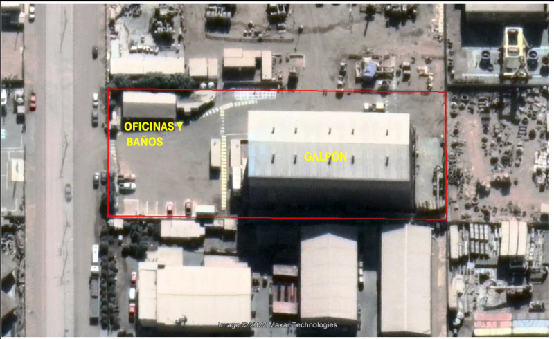 Corresponde a un terreno de 5400.- m2 aprox. , el que cuenta con un galpón de 1.200.- m2 aprox, y una altura de 25 mts aprox. Posee radier de hormigon armado para soportar el peso de maquinarias y cubierta en planchas de zinc metálicos.