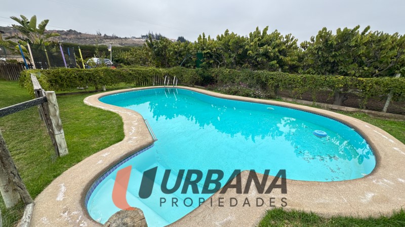 En venta excepcional parcela ubicada en el tranquilo y bien conectado sector de Alfalfares Oriente, a pocos metros del cruce con la Ruta 41. Su privilegiada ubicación ofrece conectividad directa con la ciudad de La Serena, combinando lo mejor del entorno rural con la cercanía a zonas urbanas.\n\nEl terreno cuenta con una superficie total de 5.000 m2 y alberga dos edificaciones independientes, además de infraestructura recreativa y agrícola de excelente nivel.\n\nLa casa principal, de aproximadamente 140 m2 construidos, posee construcción regularizada y un perímetro con tejas de alerce. El techo es de teja asfáltica. Dispone de cuatro dormitorios, dos baños, cocina y un amplio living comedor. Se abastece de agua potable rural y cuenta con derechos de agua de riego, además de un sistema de riego por goteo instalado para el cultivo de chirimoyos. Complementan esta construcción una piscina, quincho con baño independiente y una bodega. El proyecto de alcantarillado se encuentra actualmente en etapa de ingeniería.\n\nLa segunda vivienda, de aproximadamente 110 m2, cuenta con tres dormitorios y dos baños. Actualmente se encuentra arrendada, lo que representa una excelente alternativa de renta inmediata.\n\nEn el predio se emplazan 140 árboles de chirimoyo en producción, lo que otorga un atractivo valor agregado para quienes buscan una inversión agrícola o un proyecto mixto habitacional-productivo. La propiedad combina entorno natural, infraestructura consolidada y excelente proyección de inversión.\n