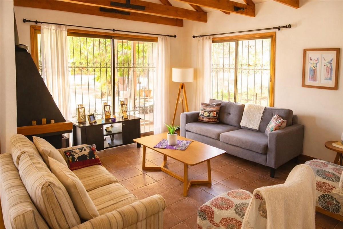 Propiedad con vivienda unifamiliar desarrollada en un piso, construcción principal estructura de madera, en muy buen estado. Superficie Pisos cerámica, cerchas de madera a la vista en living y ventanas termo panel, chimenea, sistema a/c en toda la casa, cubierta tejas de arcilla.