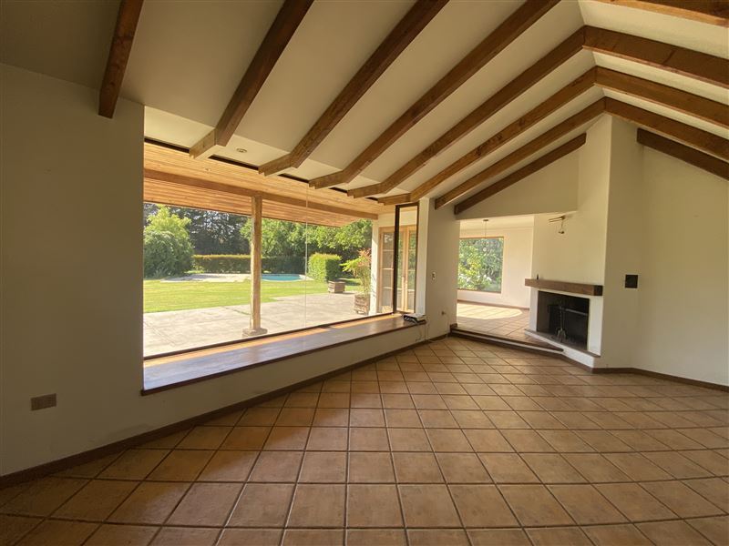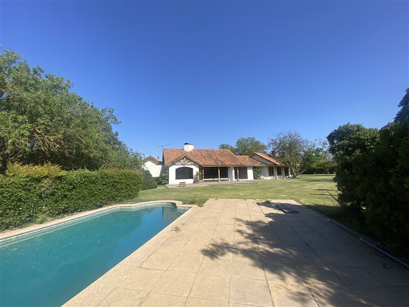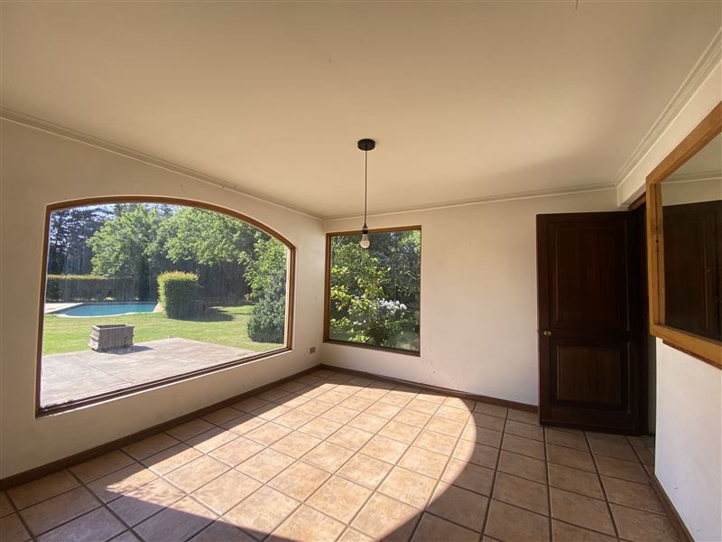 La casa con vista a la cancha de Golf y a la Cordillera, esta emplazada en un lindo jardín formado, con árboles grandes, riego automático y piscina