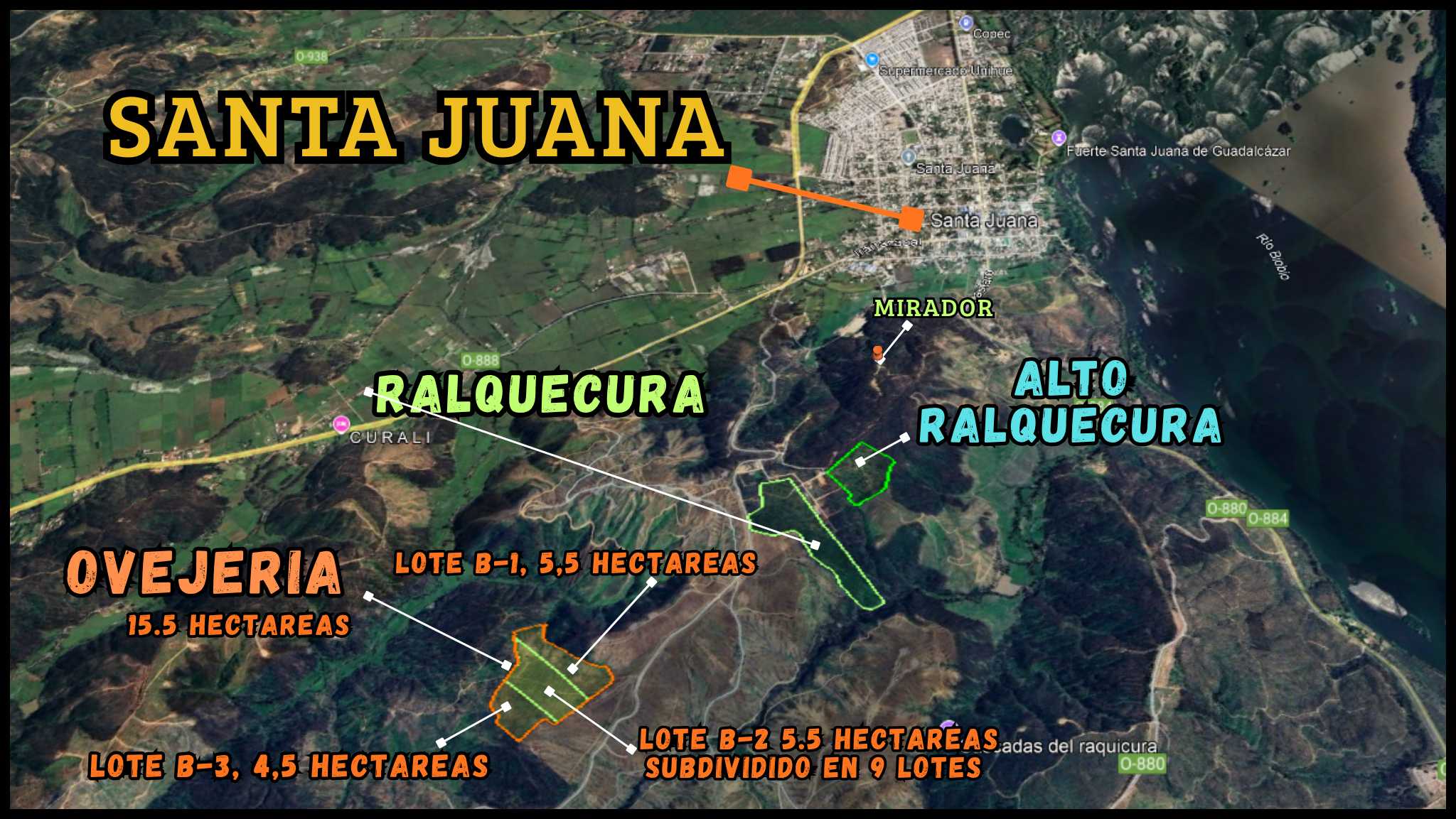 - B2 (5,5 ha): UF 3.590; "Incluye subdivisión interna de 9 lotes", ( Estos tambien se pueden vender de forma individula)