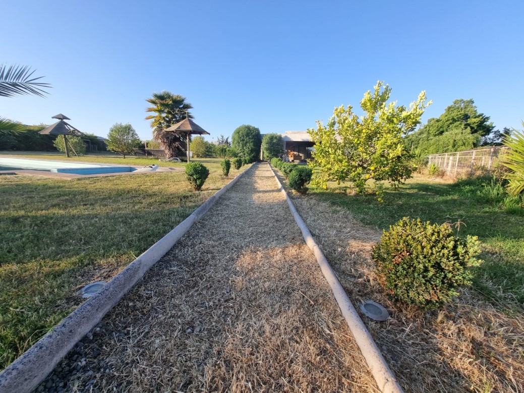 Parcela con casa sólida de 1 piso, grandes áreas verdes y excelentes amenidades para disfrutar en familia. \nCaracterísticas:\n- Terreno de 5000 m2\n- Casa de 236 m2 construidos\n- Piso porcelanato\n- Living comedor separado, en desnivel y con estufa a leña\n- 4 dormitorios de gran tamaño, matrimonial en suite y con walk in closet\n- Sala de estar\n- 3 baños, 1 de visitas\n- Cocina con isla, encimera, campana y horno eléctrico\n- Logia\n- Terraza techada con vista a la piscina\n- Quincho cerrado de 50 m2, con parrilla, horno, baño, cocina y terraza\n- Piscina de hormigón 13 mt x 8 mt, con terraza tipo deck\n- Camarines de hombres y mujeres\n- Canil\n- Estacionamiento techado para 3 vehículos\n- Portón de corredera\n- Año 2017\n- Contribuciones: $ 427.000 por periodo\nComisión corretaje: 2%+iva\n